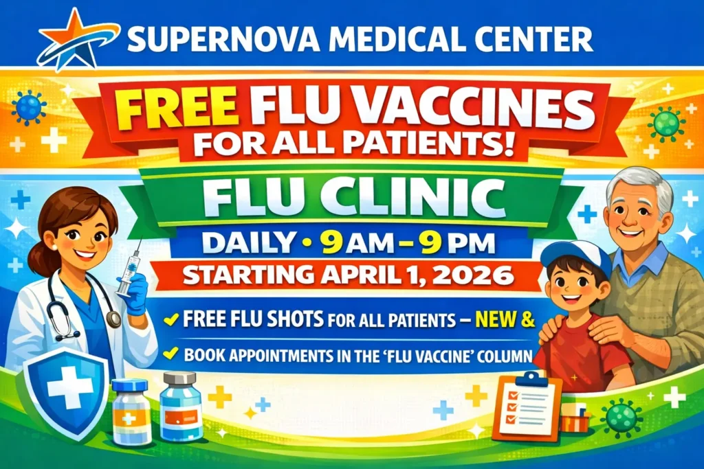 Supernova Medical Center is offering FREE flu vaccines for all patients — new and existing.
